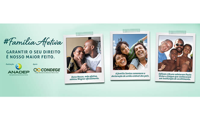 O afeto é o elemento fundamental para a formação familiar, superando, por exemplo, o vínculo biológico. Essa relação a partir de valores como atenção, cuidado, responsabilidade e solidariedade é o tema da Campanha Nacional dos Defensores Públicos, que será lançada nesta sexta-feira (5), em Salvador (BA), durante um grande mutirão de atendimento. Com o mote Família Afetiva, a ideia é mostrar à sociedade que a Defensoria Pública garante o direito ao reconhecimento da instituição familiar e defende a aplicação de todos os dispositivos previstos no Direito de Família a qualquer tipo de relação.