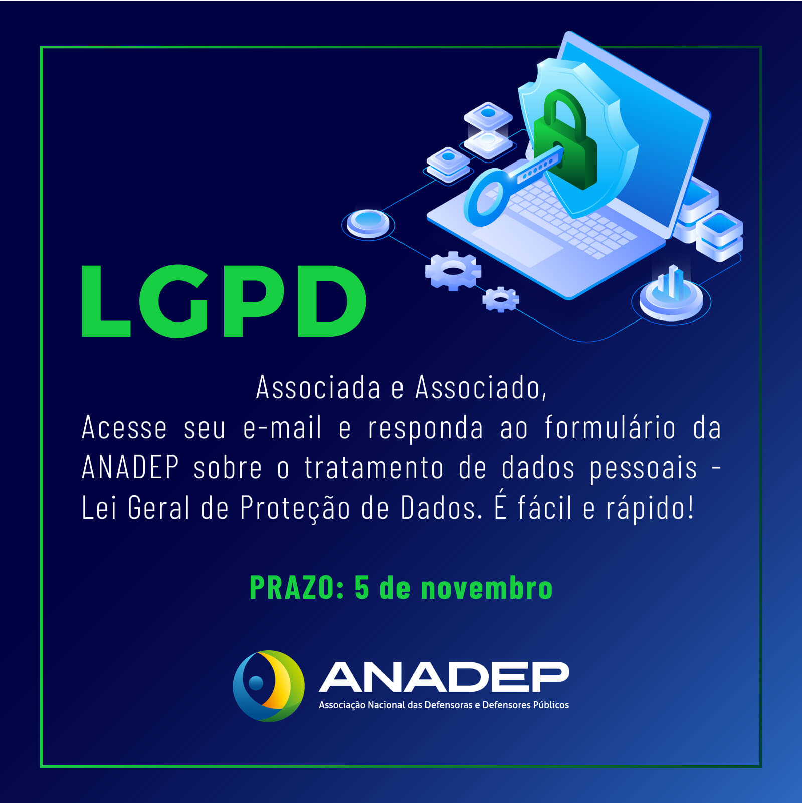 A ANADEP está nas fases finais de sua adequação à LGPD (Lei Geral de Proteção de Dados Pessoais). Na quinta-feira (28/10), a entidade enviou para todas e todos associados(as) e-mail marketing com o formulário sobre o tratamento de dados pessoais.