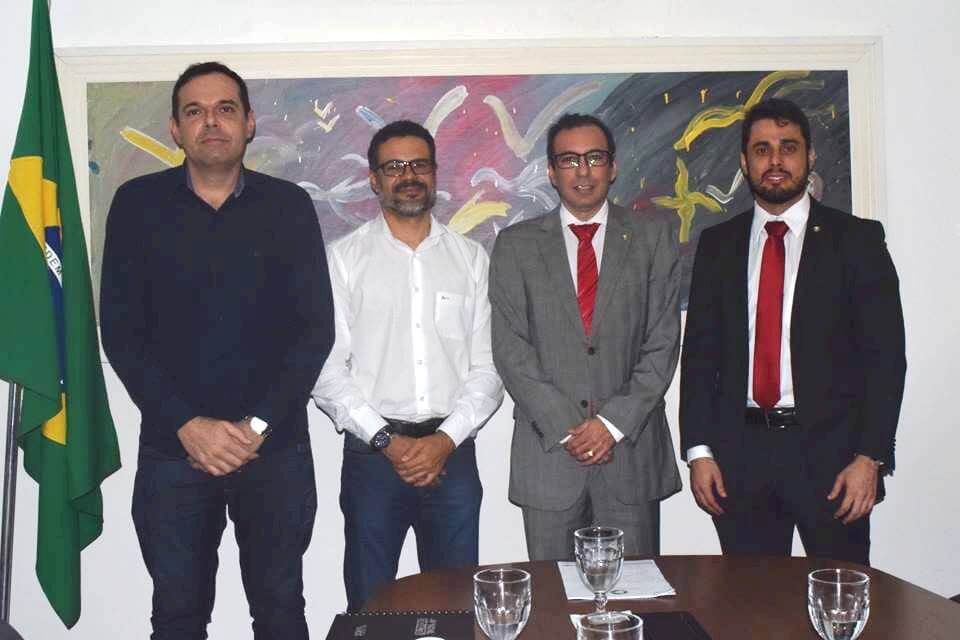 O defensor público geral, Jesus Jairo Lacerda; o subdefensor geral, Leó Neto; o defensor público lotado em Estância, Aroldo Sávio e os professores do IFS, Carlos Mariano Melo Júnior e Matheus Carvalho Conceição se reuniram no último dia 5, na sede da Defensoria Pública, para tratar da parceria.