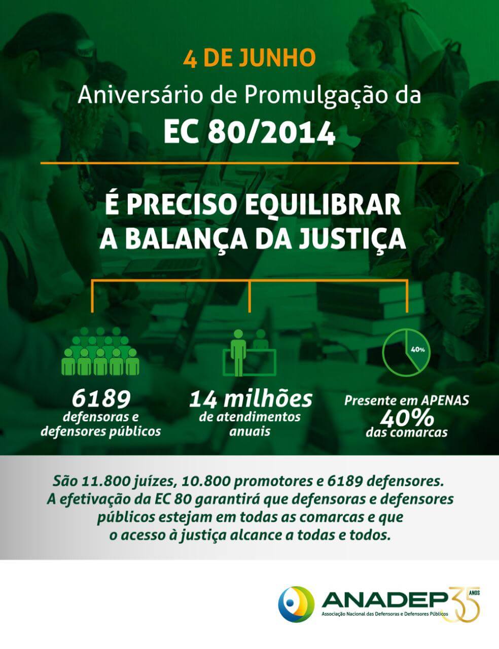 Originária da PEC Defensoria para Todos (PEC 247/2013, na Câmara e PEC 4/2014, no Senado), a EC 80 deu novo patamar constitucional à Defensoria Pública, inserindo a Instituição em seção exclusiva no rol das funções essenciais à Justiça e afirmando também sua autonomia administrativa e financeira. Além disso, a emenda prevê também requisito fundamental para assegurar esta autonomia: a iniciativa legislativa.