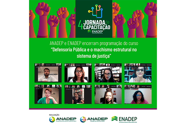 Na quinta-feira (3/11), foi o último dia da IV Capacitação ENADEP, com a temática "Defensoria Pública e o machismo estrutural no sistema de justiça". O tema da aula foi "A interseccionalidade e o entrecruzamento de violências de gênero e raça com o machismo".A facilitadora foi Marjorie Chaves, mestra em História e Doutoranda em Política Social.