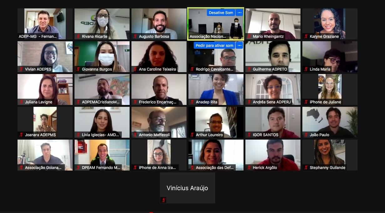 Representada pelo presidente Herick Argolo, a ADPESE participou nesta quarta-feira (9/6), da assembleia geral extraordinária via zoom, promovida pela ANADEP com a participação de representantes de todas as associações estaduais. Durante a reunião, as defensoras e defensores públicos discutiram assuntos de interesse da categoria no âmbito jurídico e legislativo, além de pautas institucionais.