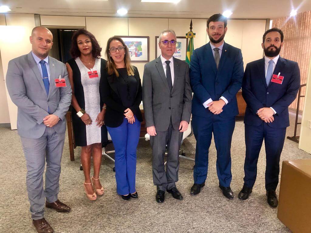 O secretário executivo do Ministério da Justiça, Luiz Pontel de Souza, recebeu, nessa quarta-feira (20/3), representantes da ANADEP para tratar do pacote anticrime. A proposta, que tramita na Câmara dos Deputados, inclui três projetos de lei que alteram a legislação penal e processual penal. Participaram do encontro, o presidente da ANADEP e os vices-presidentes, Pedro Coelho, Rivana Ricarte e Gustavo Alves, além da coordenadora da Comissão de Política Criminal da ANADEP, Lúcia Helena, e o presidente da APADEP e diretor jurídico da ANADEP, Augusto Barbosa. Na ocasião foi entregue uma nota técnica com os principais pontos a serem trabalhados.