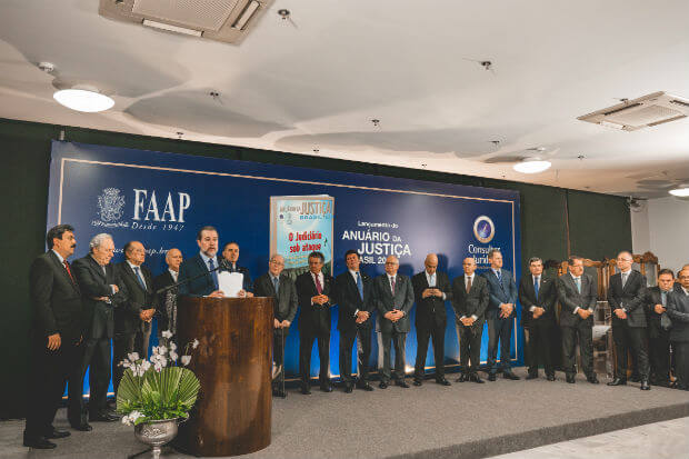 A comunidade jurídica do sistema de Justiça participou, na noite de quarta-feira (29/5), do lançamento do Anuário da Justiça Brasil 2019. O evento aconteceu no Salão Branco do Supremo Tribunal Federal e contou com a presença de ministros da corte e do Superior Tribunal de Justiça, além de representantes da advocacia, Defensoria Pública e do Executivo e do Legislativo. O presidente da ANADEP e os vices-presidentes, Pedro Coelho, Rivana Ricarte, Gustavo Alves e Flávio Wandeck estiveram presentes.