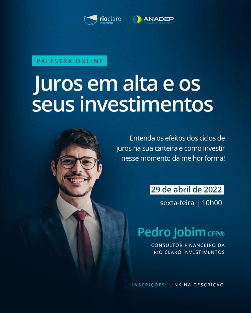 A palestra será apresentada pelo consultor financeiro Pedro Jobim CFP® com o tema “Como a alta da Selic impacta nos seus investimentos?”. Será abordada uma visão de como o novo patamar da taxa Selic impacta nos seus investimentos, como a dinâmica desse ciclo funciona e como aproveitar esse momento dos juros através do mercado financeiro.