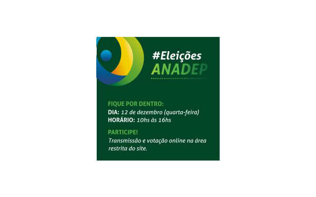 A chapa "ANADEP forte: experiência e diálogo para garantir direitos" foi a única que se inscreveu para concorrer à eleição dos conselhos diretor, consultivo e fiscal da ANADEP para o biênio 2019/2021.