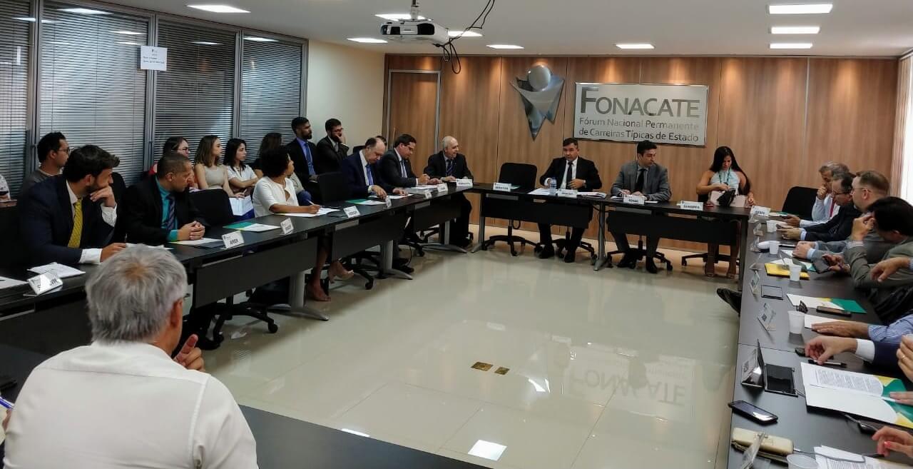 A reforma da Previdência foi destaque, na terça-feira (23/1), durante assembleia geral do Fórum Nacional Permanente de Carreiras Típicas de Estado (Fonacate). Representantes das entidades afiliadas ao Fórum discutiram sobre as estratégias de atuação no Congresso Nacional e sobre campanhas de mídia para tratar do tema. Os dirigentes também falaram sobre a importância de estabelecer um diálogo com o novo governo. O Fórum já vem solicitando agendas, entre elas, com o ministro da Casa Civil, Onyx Lorenzoni. O presidente eleito da ANADEP, Pedro Paulo Coelho, acompanhou a reunião.