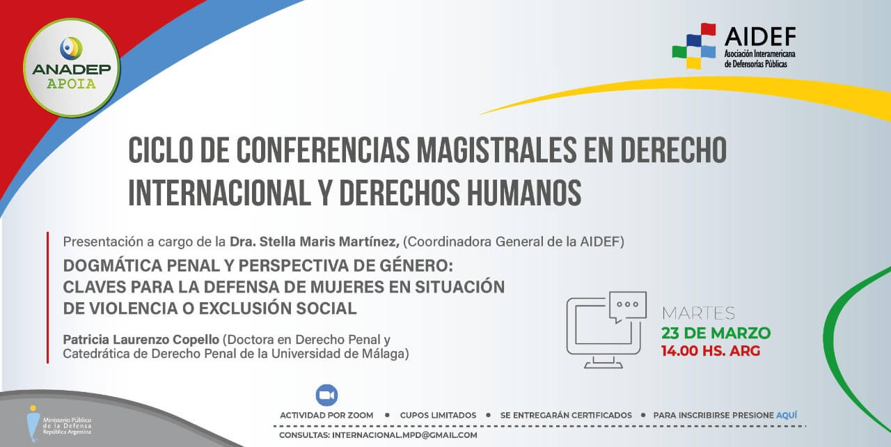 A Associação Interamericana de Defensorias Públicas (Aidef) e o Ministério Público de la Defensa República Argentina abriram inscrições para o "Ciclo de Conferencias Magistrales en Derecho Internacional y Derechos Humanos". O evento será realizado de forma virtual e contará com cinco encontros. A aula de abertura será dia 23 de março e terá como tema “La delincuencia femenina en contextos de violencia o exclusión social”, ministrado por Patricia Laurenzo Copello, doutora em Direito Penal e professora na Universidade de Málaga.