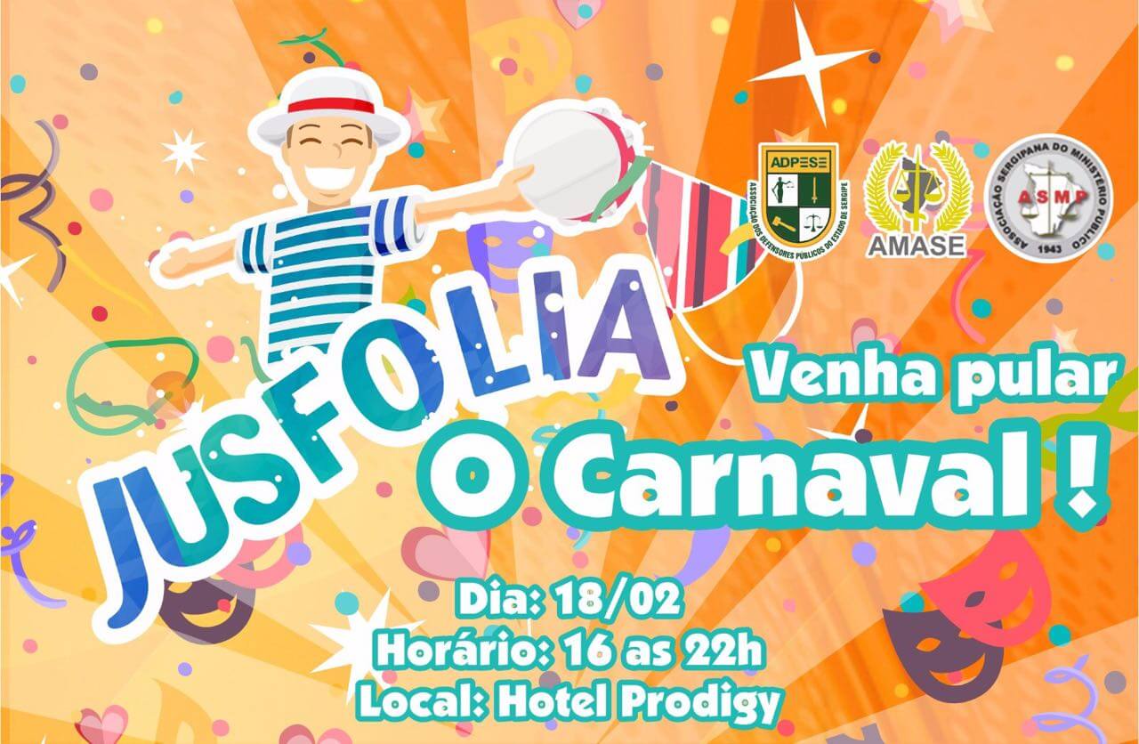 A Associação dos Defensores Públicos do Estado de Sergipe (ADPESE), a Associação Sergipana do Ministério Público (ASMP) e a Associação dos Magistrados de Sergipe (AMASE) vão realizar uma festa de carnaval para os seus associados. Intitulado Jusfolia, o evento ocorrerá no sábado, 18 de fevereiro, na área externa do Hotel Prodigy, localizado na Barra dos Coqueiros, das 16h às 22h. A animação ficará por conta das bandas Fanfarra e do Faustão.