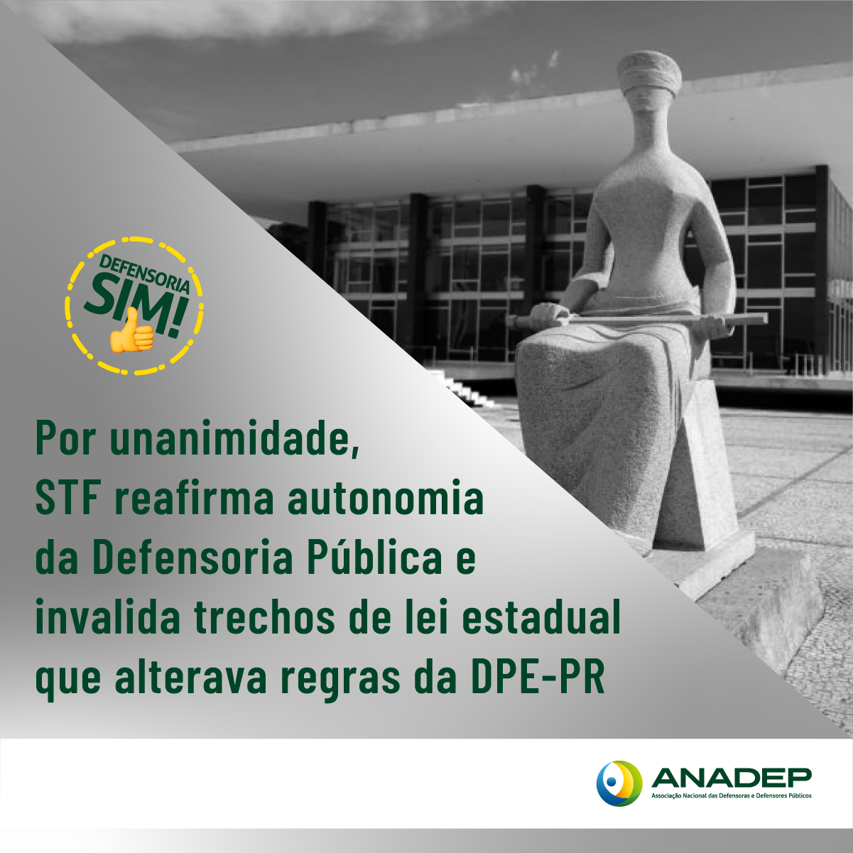 A presidente da ANADEP, Rivana Ricarte, comemora o resultado do julgamento. Segundo ela, o STF vem demonstrando compreensão sobre a importância da autonomia da Defensoria Pública e do impacto negativo de qualquer subtração à Instituição. “O Supremo, com as recentes decisões publicadas, restabelece a constitucionalidade e o respeito pela Defensoria Pública, instituição responsável pela garantia do direito a ter direitos à população em situação de vulnerabilidade do nosso país”, avaliou.