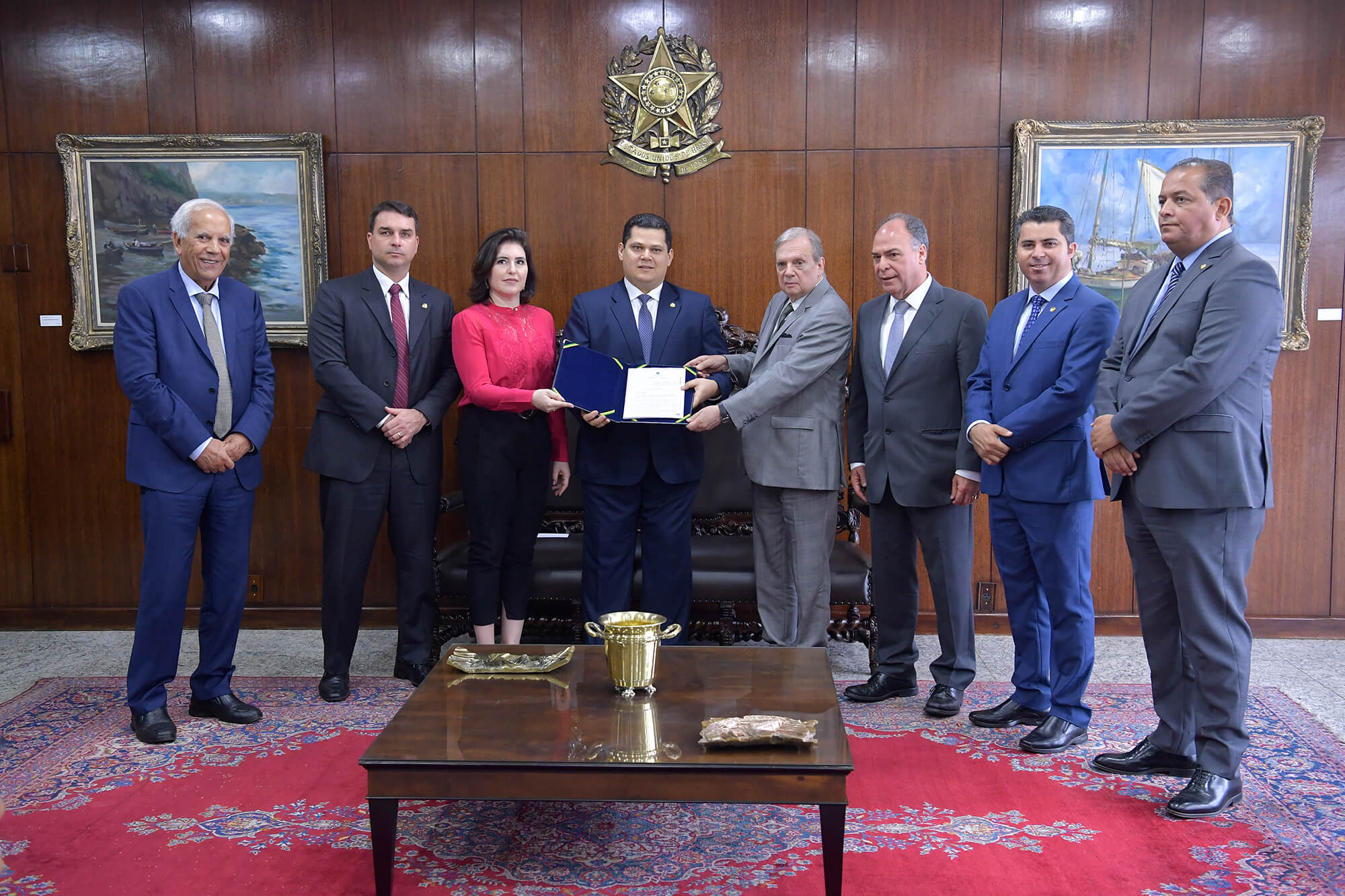 O senador Tasso Jereissati (PSDB-CE) entregou, na terça-feira (27/8), o relatório sobre a reforma da Previdência para o presidente do Senado, Davi Alcolumbre, e para a presidente da Comissão de Constituição e Justiça (CCJ), Simone Tebet (MDB-MS), no gabinete da presidência. Fonte: Agência Senado (Marcos Brandão/Agência Senado)