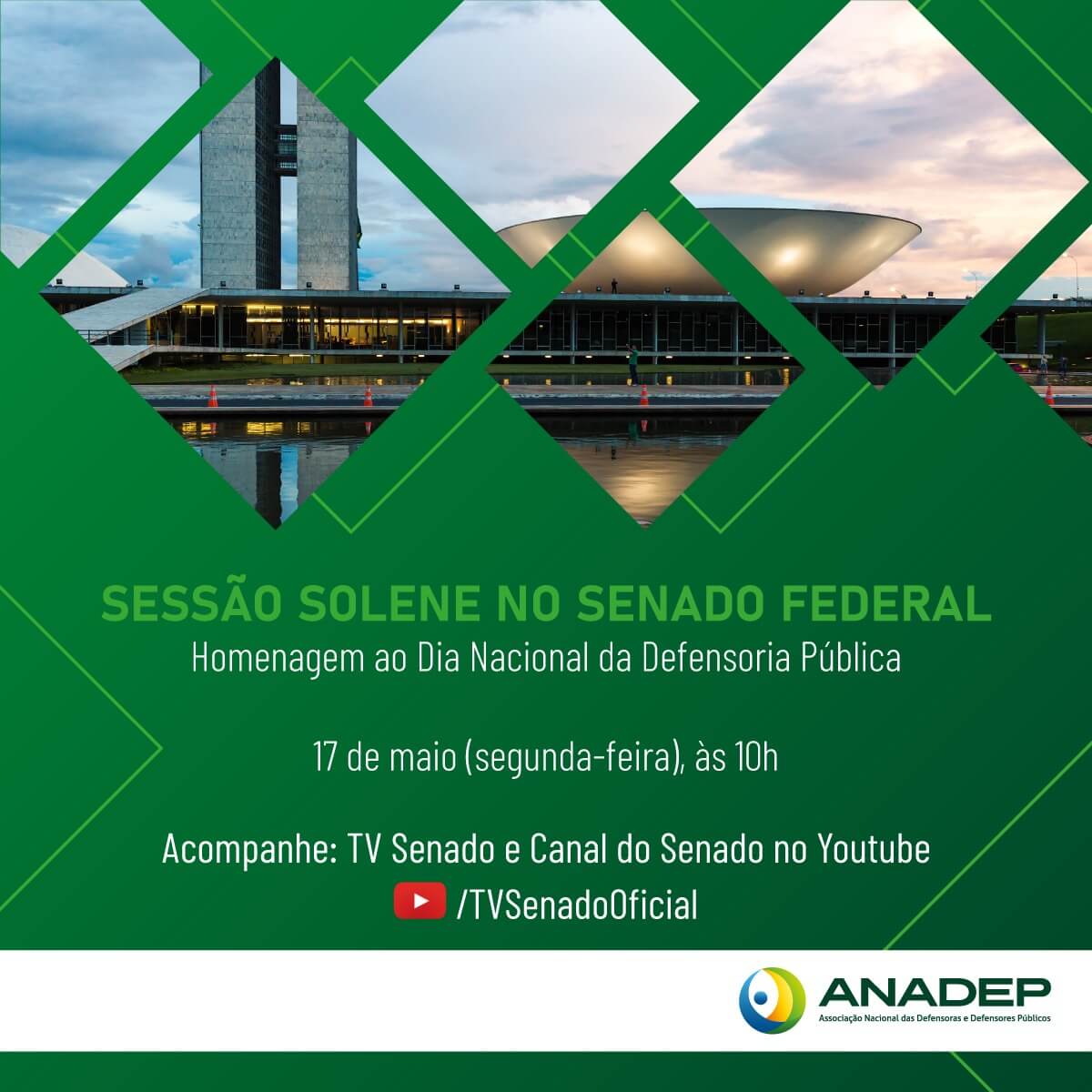 Em comemoração ao Dia da Defensora, do Defensor Público e da Defensoria Pública, o Senado Federal promoverá, no próximo dia 17 de maio (segunda-feira), às 10h, sessão solene para homenagear a categoria. Por causa da pandemia da COVID-19, a solenidade ocorrerá apenas virtualmente e será transmitida na TV Senado e no Canal do Senado Federal no Youtube (youtube.com/tvsenado).