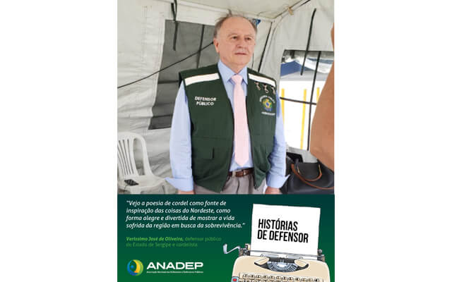 Para conhecer um pouco dessa modalidade, a equipe de comunicação da ANADEP conversou com o defensor público do Estado de Sergipe, Verissímo de Oliveira. O cordelista teve como inspiração o próprio pai, um senhor de 85 anos de idade, que aprendeu a ler cantando cordel e que até hoje recita os que escreve. Já no início de nossa conversa, ele nos presentou com alguns versos: