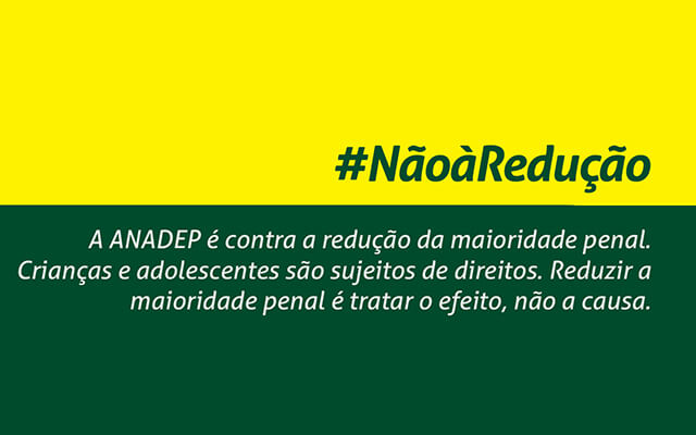 Movimento nas redes sociais: Além da articulação política relacionada à PEC da Redução da Maioridade Penal, a ANADEP tem realizado um trabalho nas redes sociais. A ideia é desmistificar que a redução da maioridade penal será a solução para a violência urbana. Participe da nossa campanha nas redes sociais. Vamos impulsionar a hashtag #NãoàRedução.