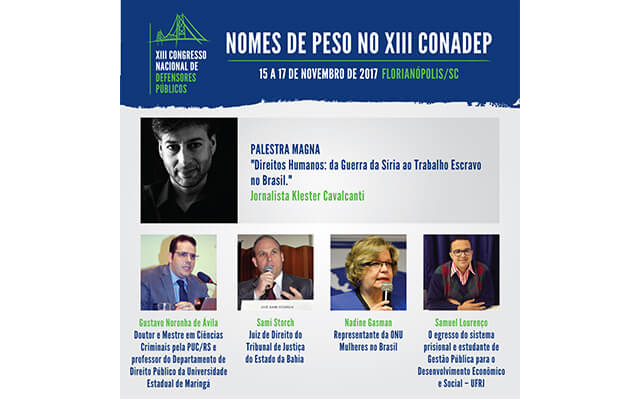 Um dos destaques será a palestra magna de abertura "Direitos Humanos: da Guerra da Síria ao Trabalho Escravo no Brasil", que será ministrada por Klester Cavalcanti, considerado um dos maiores jornalistas do país. Klester Cavalcanti é autor de cinco livros e três vezes vencedor do Prêmio Jabuti de Literatura, a mais prestigiada premiação literária do Brasil. Em 2012, foi para a Síria fazer uma reportagem especial sobre a guerra naquele país, onde acabou sendo preso, torturado e ameaçado de morte. Dessa experiência, surgiu o livro "Dias de Inferno na Síria". Já em seu livro mais recente, "A Dama da Liberdade", o jornalista aborda o gravíssimo problema do trabalho escravo contemporâneo no Brasil.