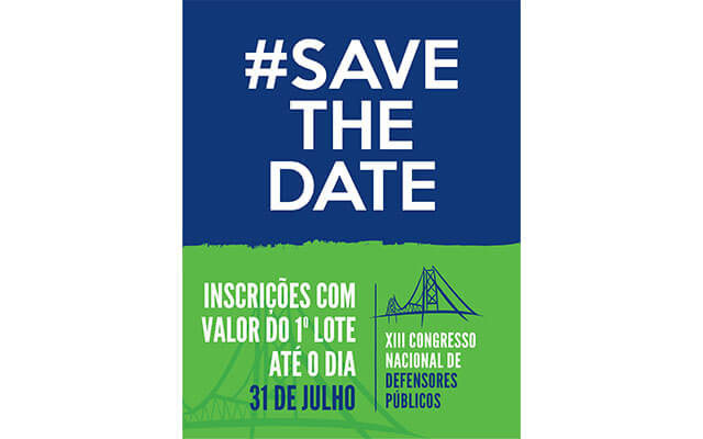 Os interessados em participar do XIII Congresso Nacional de Defensores Públicos vão ter mais uma chance de se inscreverem com valor promocional do 1º lote (R$550 para defensores públicos associados). As inscrições foram prorrogadas até o dia 31 de julho.