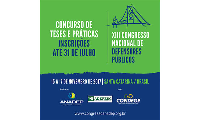 Até 31 de julho, defensoras e defensores públicos de todo o país poderão inscrever-se para os concursos de teses e de práticas do XIII CONADEP. Ponto alto do evento, os concursos são ferramentas de troca de informações acerca da atuação dos defensores em todo o país.