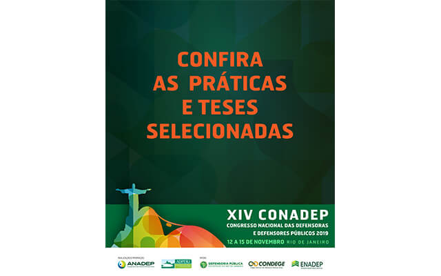 A comissão científica responsável pela organização e elaboração das atividades do XIV Congresso Nacional das Defensoras e Defensores Públicos divulga, nesta terça-feira (15), o resultado das teses e práticas selecionadas para serem apresentadas e julgadas durante o evento. Ao todo, foram avaliados 73 trabalhos e 48 foram selecionados para a apresentação oral.