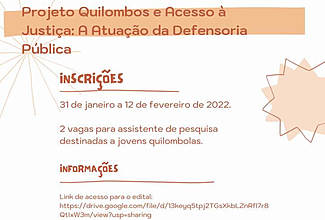 Projeto "Quilombos e acesso à justiça: a atuação da Defensoria Pública" abre vaga para assistente de pesquisa