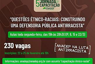 V Jornada da ENADEP focará no debate sobre questões étnico-raciais na Defensoria Pública