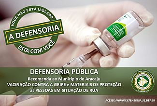Núcleo de Direitos Humanos da Defensoria Pública recomenda ao Município de Aracaju vacinação contra a gripe e materiais de proteção às pessoas em situação de rua